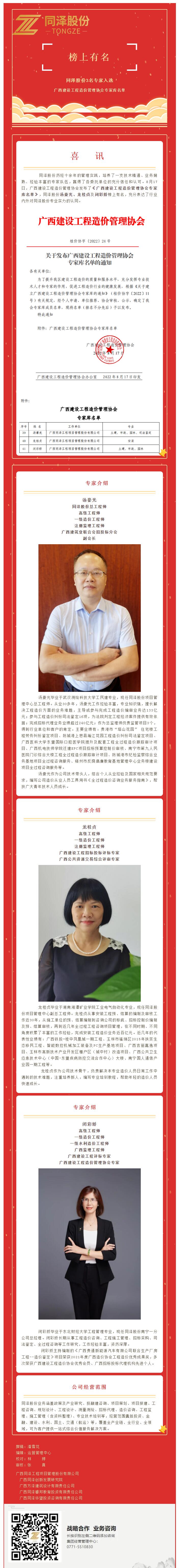 喜訊 | 同澤股份3名專家入選廣西建設工程造價管理協(xié)會專家?guī)烀麊?/h2>