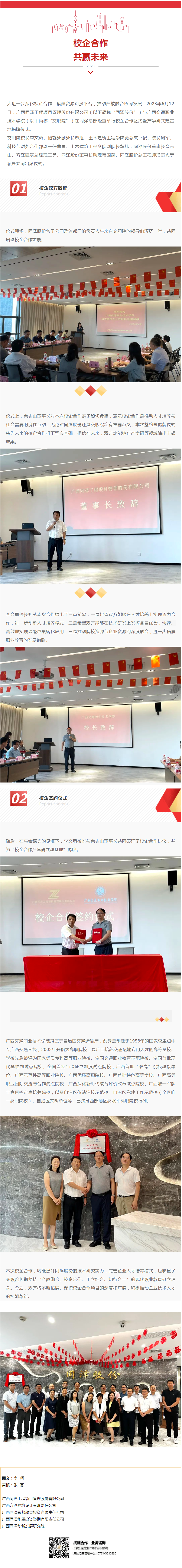 廣西同澤工程項(xiàng)目管理股份有限公司與廣西交通職業(yè)技術(shù)學(xué)院隆重舉行校企合作簽約暨產(chǎn)學(xué)研共建基地揭牌儀式